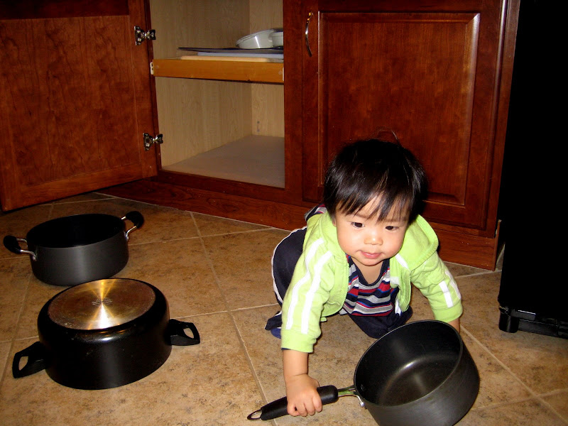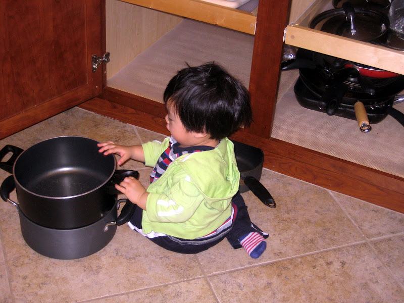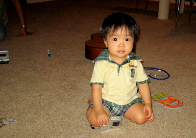 Chỉ 3 ngày nữa là Ku tròn 15 tháng rồi đó. 15 tháng mà em mới chỉ đang tập đi thôi, chứ cứ như các bạn khác thì chạy lon ton từ lâu rồi. Được cái dạo này em có hứng tập đi (ít ra là hơn trước đây) thỉnh thoảng lại tự động đứng dậy lảo đảo được vài bước như ông say rượu ấy. Mẹ em thì chẳng lo, cứ nghe theo sách là "không ai lý giải được tại sao có những em bé biết đi rất sớm, và ngược lại - nhưng bé biết đi càng muộn thì bố mẹ càng ít tóc bạc" :) Dù em không biết đi thì cũng đã phá phách khắp nhà, từ trên xuống dưới, từ trong ra ngoài, từ gầm giường tới góc bếp rồi. Cầu thang thì bò lên bò xuống ngày mấy chục bận, các loại cửa thì mở ra mở vào cứ sầm sập... Ấy mà mẹ chỉ mong em cứ tiếp tục nghịch phá như vậy, còn phá được tức là còn khỏe mạnh, nhỉ?