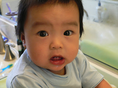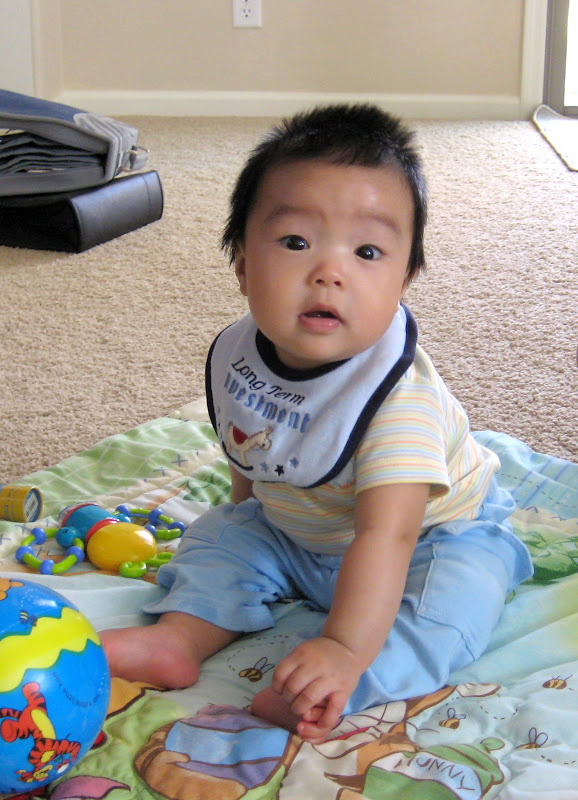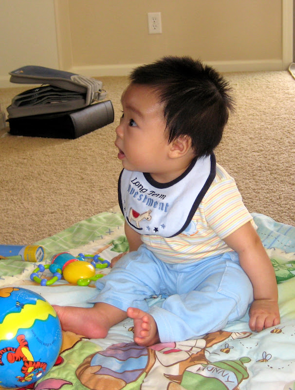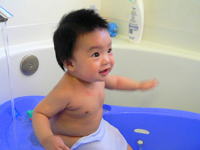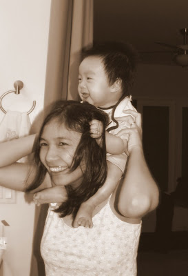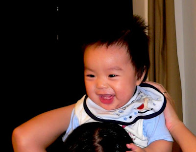 Hom qua ngoi xem lai anh va video cu cua con ma me va di Hin cu lan ra cuoi. Nhu la cai video di Hin voi vang mang ra quay khi con bat dau biet het ho "ah ah". Di bam may vao ho "ACTION", va con chi nam nhin di nhu khong co chuyen gi xay ra. "Action" cua be chi la nam thoi :) Roi luc con moi tap lay, cu lan qua lan lai dap chan that luc ma van khong "qua" duoc. Hay cai lan dau tien con nhay jumper, 2 chan be bong cu dap tung len chu khong nhun nhay day tu chu nhu bay gio, the ma bo me cu bo lan ra cuoi.
