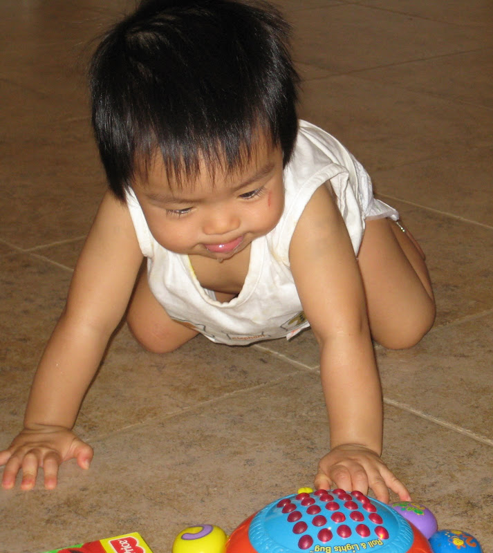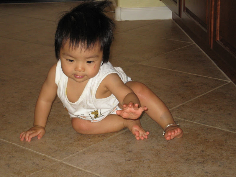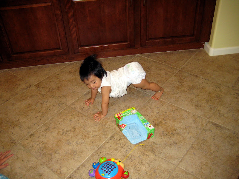 Không, thực sự em biết bò thì mẹ mừng lắm, nhưng mẹ cũng không sốt ruột cho lắm. Kể ra thì từ ngày em biết bò mẹ cũng nhàn ra khối, cứ việc để em xuống sàn muốn đi đâu thì đi, không cảm thấy guilty vì không chơi với em như lúc chỉ biết nằm ngửa. Nhưng đó không phải là việc mẹ đang nhắc tới.