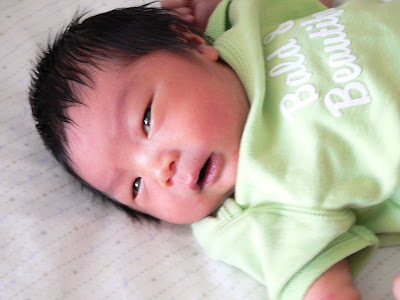 Thực ra, tóc em rất mềm mại, mà sao lại nổi loạn như thế mẹ cũng không biết nữa. Khi vừa sinh ra, em đã một đầu tóc:
