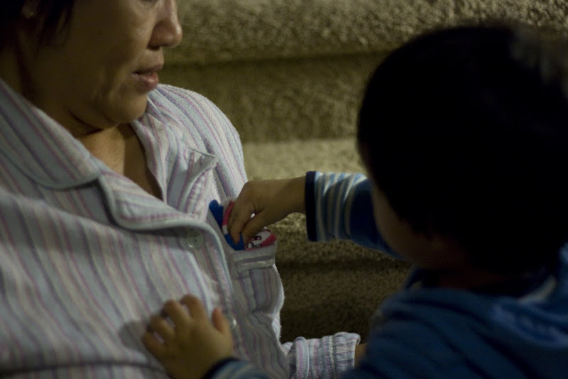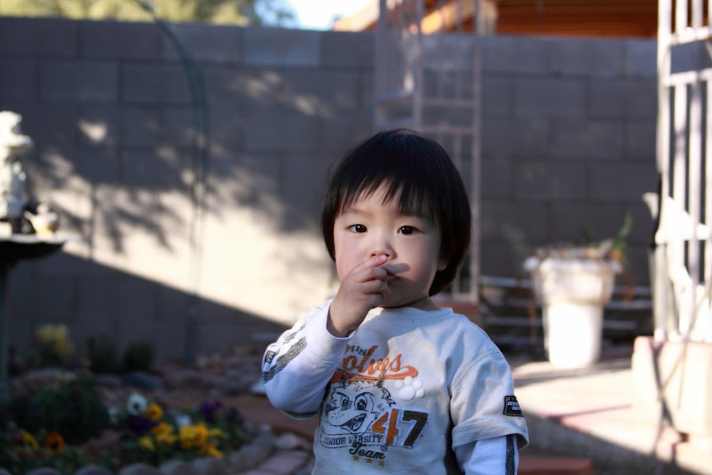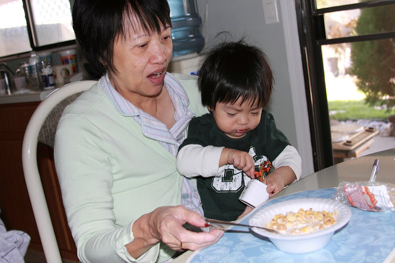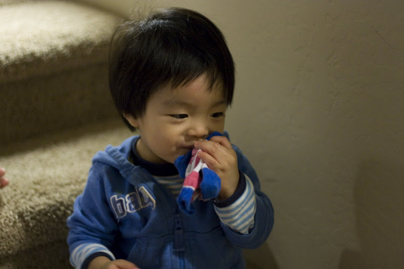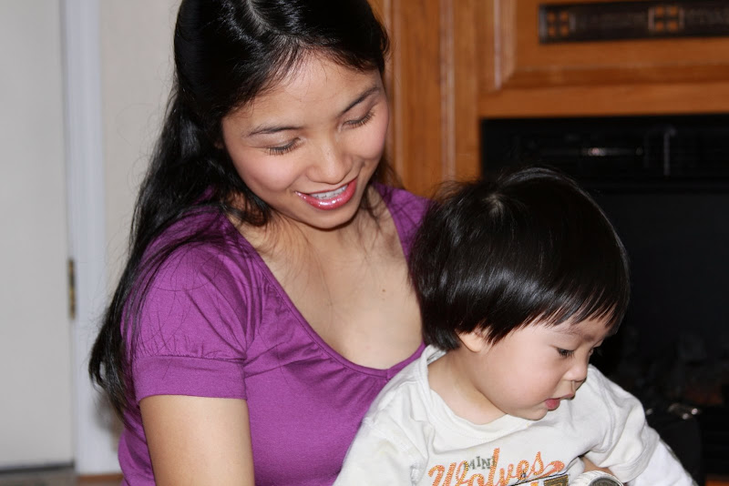 Sáng chủ nhật là 30 Tết, 10 giờ sáng trong nhà đã ngào ngạt mùi thức ăn và thơm thơm mùi hương - mùi Tết. Con trai cũng dậy trễ hơn thường lệ, 9 giờ sáng mới dậy và vui vẻ ngoan ngoãn một cách kì lạ (bình thường em cũng ngoan nhưng khi mới ngủ dậy thì thường hơi nhõng nhéo gắt ngủ một tí). Tự dưng thấy lòng mình lâng lâng, như Tết :) Và lần đầu tiên trong đời, tôi được mừng tuổi một người, con trai bé bỏng của tôi, cho dù ngay sau đó chồng tôi đã tịch thu lại lấy tiền bỏ ví :)