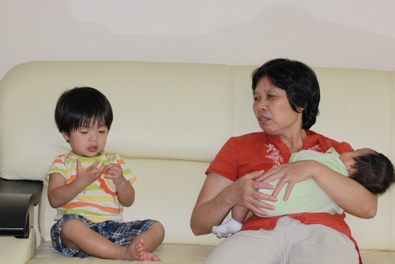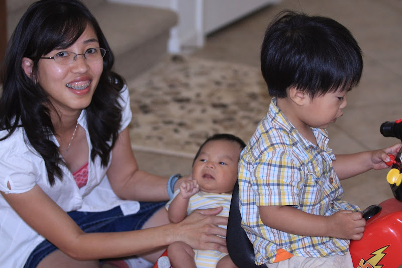 Có một hôm, anh ấy cứ nằng nặc đòi mấy cục bông (cotton ball), mẹ không biết để làm gì mà anh ấy khoái thế. Mẹ vừa đưa cho anh ấy thì anh ấy nhăn răng cuời, vén áo ra ngay xoa xoa bông vào bụng, miệng nói "chích chích." Thì ra là anh ấy bắt chước ông nội (vốn bị diabetes) tiêm insulin vào bụng.