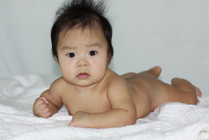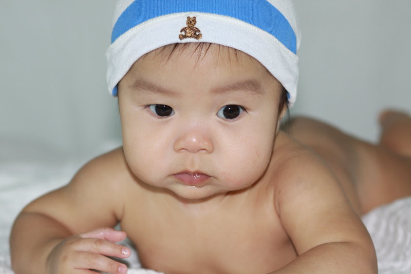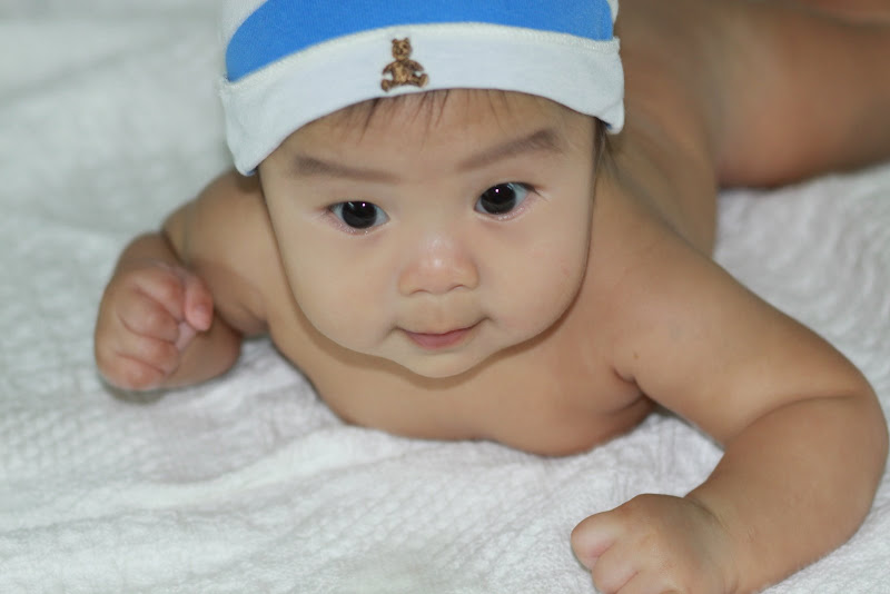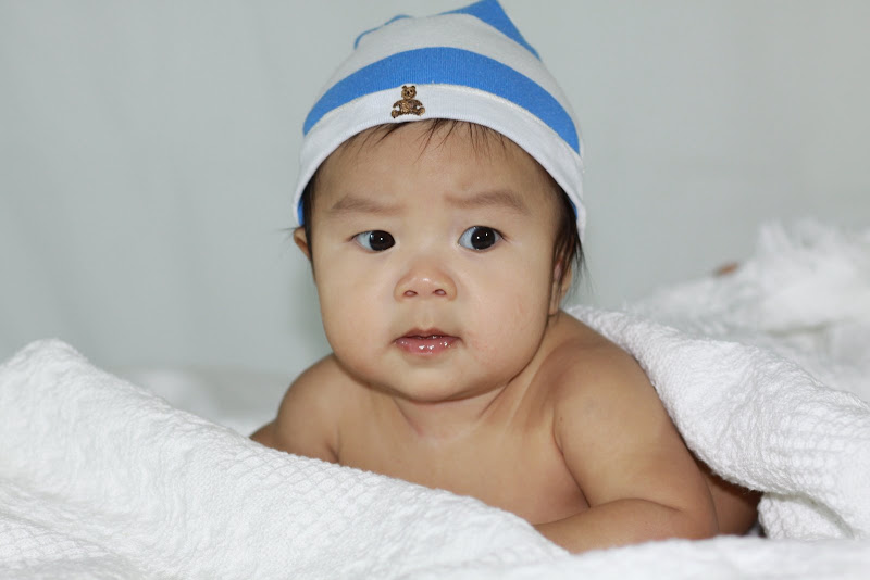 Nhan dip Landon 4 thang tron, me de nghi daddy chup cho be may tam anh lam ki niem. Daddy rat hung khoi chup ca may chuc tam luon, con me thi thay tam nao cung dep (cha biet co phai tai nhin con minh nen moi thay vay khong) nen me upload len het