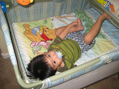 (Toi nghiep anh MD khong duoc cai anh nao. Tai vi may hom nay khong hieu anh ay lai bat duoc 1 con virus nao nua ay ma bi om, sot li bi, bo an may hom roi nuoc juice cung khong them uong, nen anh ay von da nguoi day lai con gay top di... Hom nay bat dau thay tieng anh ay bo lo ba la, chan da bat dau chay binh bich, va uong duoc 1 binh sua, me moi thay nhe ca nguoi. Duoc nghe lai tieng cuoi cua anh ay, me moi thay nho lam sao nhung ngay thieu vang cai tieng cuoi ay!)