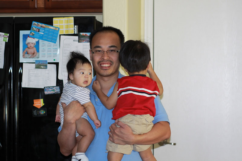 Mẹ nhớ mãi cái ngày đầu tiên mẹ bế em bé từ bệnh viện về, đôi mắt MD sáng lên như thế nào khi trông thấy mẹ, dù mẹ chỉ đi vắng có 1 đêm thôi. Anh ấy nhào tới mẹ ngay, và mẹ 1 tay ôm em bé, 1 tay vòng ra ôm anh, nhưng lại thấy anh chìa cả 2 tay ra đòi bế em bé! Em còn bé bỏng lắm anh ạ, mà em không durable như con Bông của anh đâu, nên anh nhè nhẹ tay thôi anh nhé.