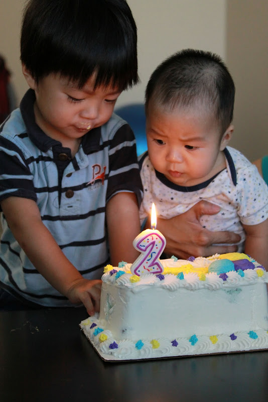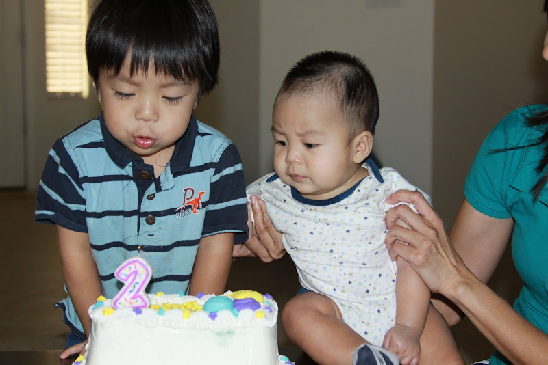 Cuối tuần, bố mẹ cho 2 anh em về Tucson, để anh Điển thổi nến sinh nhật 2 tuổi (đúng ngày) có nhiều khán giả hơn, để 2 anh em đi chơi Trung thu với ông bà, và để Landon lần đầu tiên được về thăm nhà ông bà nội. Một chuyến đi mà nhiều mục đích quá nhỉ?