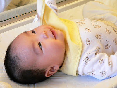 Em Luật, em tuy là bé nhất nhà, có giấu hiệu hắt hơi sổ mũi trước anh, và liên tục bị anh Điển chia germs cho thế mà em vẫn kiên cường (trộm vía). Anh Điển thì ốm thế chứ em thì chỉ đôi lúc thở hơi khò khè chút chút như có đờm trong cổ, vậy thôi. Mẹ bảo là nhờ sữa mẹ.